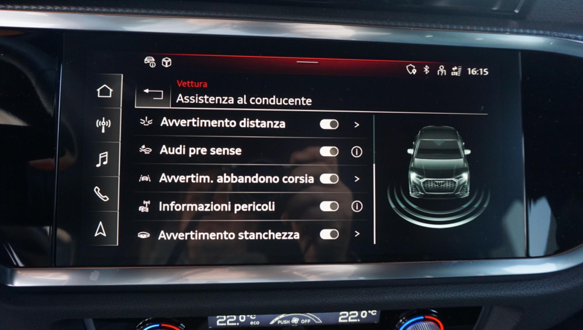 Equipaggiamenti a richiesta Nero Mythos metallizzato 0E0E Adaptive speed assist (ACC) PCG Audi Soundsystem 9VD Cerchi in lega di alluminio Audi Sport a 5 razze doppie 42F design Rotor 8,5 J x 20, con inserti in nero opaco tornito lucido, con pneumatici 255/40 R 20 Chiave comfort con apertura del vano baule tramite sensori 4I3 (senza Safelock) Elementi interni in similpelle 7HC Pacchetto esterno lucido nero titanio plus Audi exclusive 4ZP Pacchetto interni S line WQS Pacchetto portaoggetti e vano bagagli QE1 Panca posteriore ripiegabile e scorrevole plus 5KR S line edition 40 TDI quattro S tronic | Potenza: 142(193) kW(CV) Audi Code: A8EGLZ1X Proiettori a LED Audi Matrix con gruppi ottici posteriori a PXC LED Rivestimento in pelle/mono.pur 550 per S line per sedili N4M sportivi Sedili anteriori riscaldabili elettricamente 4A3 Sistema di ausilio al parcheggio plus 7X2 Specchietto retrovisivo interno schermabile 4L6 automaticamente Telecamera per retromarcia posteriore KA2 Tetto panoramico apribile in vetro 3FB Verniciatura completa in colore carrozzeria per look S line 2JD edition Vetri posteriori e lunotto oscurati QL5 Volante multifunzione plus in pelle a 3 razze con bilancieri 2PK appiattito nella parte inferiore Totale 10.935,00 EURO